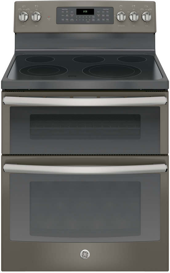 GE® 30" Free Standing Electric Range-Slate with 6.6 cu. ft. total capacity, self clean, black gloss oven interior and dual element bakeRead More